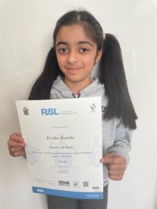 Well done to Audrey’s pupil Eesha for achieving a merit in her grade 3 RSL Vocal exam!